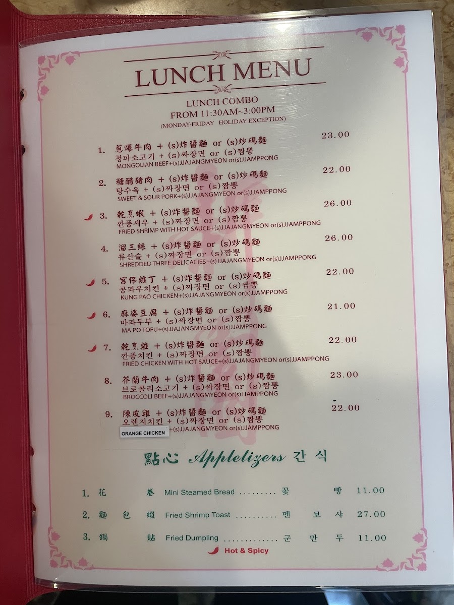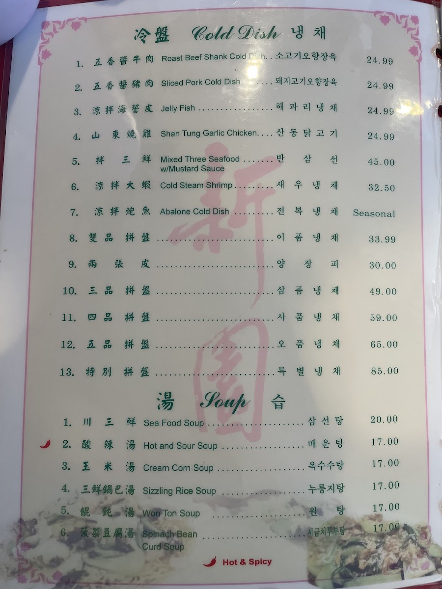 The menu offers a variety of traditional Chinese dishes divided into several key categories to accommodate different dining preferences. Appetizers include selections such as Egg Rolls, Fried Wontons, Crab Rangoon, Pot Stickers, and various shrimp and pork-based starters. Soups are available in portion sizes suitable for sharing and feature options like Chicken Sizzling Rice Soup and Shrimp Sizzling Rice Soup.